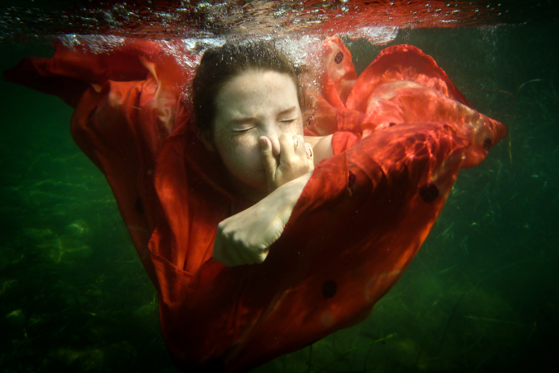 Esta serie de fotografías presenta un universo onírico más propio de la pintura simbolista que de la fotografía submarina clásica.